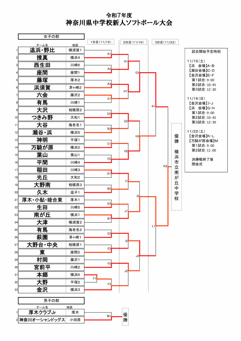 令和7年度神奈川県中学校新人ソフトボール大会 組み合わせ